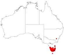 Hakea epiglottis is a common species found in all but the north-east coast of Tasmania growing in peaty heath.[7]