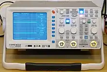 The range of products offered by HAMEG includes analog oscilloscopes, mixed-signal oscilloscopes (MSO), spectrum analyzers, function generators, RF generators, laboratory power supply units, programmable power supplies and modular laboratory measuring components. The company primarily serves the entry-level segment of the market and is particularly used at electronics laboratories, production supervision as well as at schools and universities. For a very long time, HAMEG was convinced of the benefits of analog technology in the context of the oscilloscope market. In 2004, when HAMEG introduced a new series of so-called CombiScopes (instruments which include both an analog and a digital operating mode), the company stated that "DSOs in principle can not replace analog oscilloscopes".[8] In 2007, HAMEG produced the HM2008 oscilloscope (as shown in the picture) which includes an analog and a digital element as well as mixed-signal functions (4 digital channels).