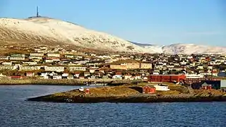 Hammerfest or Hámmárfeasta is a town that is also the administrative centre of Hammerfest Municipality in Troms og Finnmark county, Norway. It is located on the northwestern coast of the island of Kvaløya, just north of the village of Rypefjord and southwest of the village of Forsøl. The 2.84-square-kilometre (700-acre) town has a population (2017) of 8,052 which gives the town a population density of 2,835 inhabitants per square kilometre (7,340/sq mi).[1]