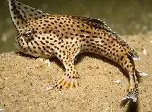 Handfish are any anglerfish within the family Brachionichthyidae, a group which comprises five genera and 14 extant species.[2] These benthic marine fish are unusual in the way they propel themselves by walking on the sea floor rather than swimming.