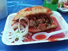 - Fricasé – A soup in Bolivian cuisine prepared with ribs, hominy and potatoes[23]