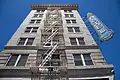 Hotel Harrison opened in 1914, with Roger Coit operation the hotel. It was built by F. A. Mueller. In the early 1920s, The Oakland Business and Professional Women's Club held their meetings at the hotel. The club built their own building in 1926.[7] The World War I and later joining World War II veterans with the American Legion held their meetings at Hotel Harrison for many years. Half of the hotel's interest was sold to Mrs. Byrne Kelly in 1929. Mrs. Byrne Kelly became manager of the hotel and installed the current large neon sign. In 1933, Hotel Harrison was remodeled, and the new manager was Mr. Claire Bottenfield. The remodeling was done by its new owner William Frisbie Lewis Company, with Irving C. Lewis as president of the company. Operating on the ground floor was The Red Lion Tavern, a tavern and coffee shop.[8][9][10][11]