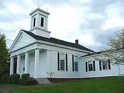 What is now Hill Street in rural central northern Suffield was laid out in 1726 along a north–south ridge, and was historically part of one of the main routes between Windsor, Connecticut and Springfield, Massachusetts. The area developed in part over religious differences: Joseph Hastings began opposing Congregationalist teachings and practices as early as 1740, and was ordained a Baptist minister. Their church, built at Hill and Russell where the present 1842 Greek Revival church now stands, was one of the first Baptist congregations to be established in Connecticut. This became the nexus for a small village, in which the Hastings house (still standing next to the church) served as a tavern for travelers, and a blacksmith and shop were located across the triangular green at the street corner. In the early 20th century a local barn was adapted for use as a summer theater venue, lasting until World War II.[2]