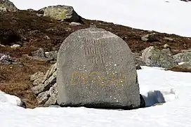 Bauta at Dyrskar, near the Old Dyrskartunnel in Haukelifjell with set elevation 1,100 m (3,608.92 ft) above sea level