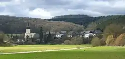 The historical village centre can be found tightly grouped about the church, but there is a newer centre in the village over on a slope. Running from there from the place where the dale broadens out is a farm lane leading to the outlying farmsteads (Aussiedlerhöfe) and then on towards Gösenroth, which follows an old Schmidtburg Ritter- und Pfaffenstraße (“knight and parson road” – those two social classes were then particularly mobile), which likely was already used in Roman times, and which later served as one of the most important transport links between the castles on the Nahe and the Moselle.