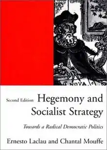 Hegemony and Socialist Strategy: Towards a Radical Democratic Politics is a 1985 work of political theory in the post-Marxist tradition by Ernesto Laclau and Chantal Mouffe. Developing several sharp divergences from the tenets of canonical Marxist thought, the authors begin by tracing historically varied discursive constitutions of class, political identity, and social self-understanding, and then tie these to the contemporary importance of hegemony as a destabilized analytic which avoids the traps of various procedures Mouffe and Laclau feel constitute a foundational flaw in Marxist thought: essentializations of class identity, the use of a priori interpretative paradigms with respect to history and contextualization, the privileging of the base/superstructure binary above other explicative models.