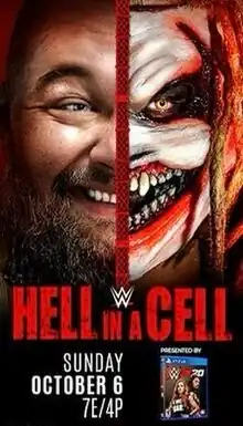 Prior to Clash of Champions, Erick Rowan attacked Roman Reigns backstage[18] and lied to Daniel Bryan about it, resulting in him and Bryan splitting as a tag team.[19][20] Rowan then defeated Reigns in a No Disqualification match at Clash of Champions thanks to the returning Luke Harper, reforming their tag team.[14] On the following SmackDown, Rowan explained that he began to target Reigns to scare him and to show that Reigns was not the dominant figure he was presumed to be. Rowan also claimed that he had been overlooked, underappreciated, and disrespected and that he was not Bryan's equal, but better than him. Bryan later stated that regardless if he was a face or a heel, he never used to lie, and he thought of Rowan as his friend. Bryan was interrupted by Rowan and attacked by Harper. Reigns came out to Bryan's aid, only for Rowan and Harper to dominate Bryan and Reigns.[21] The following week, Rowan defeated Bryan, and after the match, Harper and Rowan attacked Bryan. Reigns again came to Bryan's aid, and this time, they eventually overcame Rowan and Harper. Bryan and Reigns then challenged Rowan and Harper to a tag team match at Hell in a Cell, which was made official.[22] On SmackDown's 20th Anniversary on October 4, Reigns defeated Rowan in a lumberjack match. After the match, Bryan shook Reigns' hand out of mutual respect.[23] The day of the event, the match stipulation was changed to a tornado tag team match.[24]