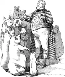 Henry Chaplin in a Punch cartoon accompanying a satirical article on his receiving a deputation on the subject of the swine fever.[46]