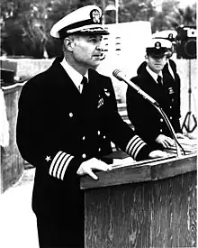 Commander Chiles served at COMSUBPAC under instruction until December 1975 and then reported to USS Gurnard in February 1976. Following an under ice Arctic Ocean deployment, he assumed command of the Gurnard on 30 May 1976. The submarine also conducted a refueling overhaul in record time and a Western Pacific deployment before Chiles departed on 15 October 1979.