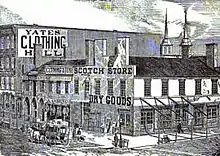 Howard and Wadhams purchased timberland and a sawmill in St. Clair County, and Howard moved to Detroit[1] to manage the firm.[3][6] The firm distributed their product at the mill, and in Detroit,[3] with a warehouse at the foot of Randolph Street.[2] In 1829, Wadhams moved to St. Clair County, near the mill' leaving Howard in Detroit=, and in 1832, DeZeng sold his portion of the partnership to Wadhams and Howard.[5] However, Howard and Wadhams piled up $30,000 worth of debt by 1835.[3] They still need to purchase pine forest for timber production, however, and due to overspending and the financial panic of 1837, were forced to assign assets to their creditors in 1839,[5] after which the company was dissolved.[3] In 1840, Ralph Wadhams' father, a wealthy businessman from New York, personally intervened to save his son's business from creditors,[3] and in 1844 reconveyed some of the lumber firm's assets to his son, who continued to run the firm without Henry Howard.[5]