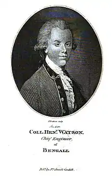 Colonel Henry Watson (1737 – 17 September 1786) was a British military engineer who worked in India. He was known for his mathematical abilities and knowledge of engineering, was involved in the design of the Calcutta dockyard, and served as a chief engineer of Bengal. An area in Calcutta known as Watgunge is named after him.