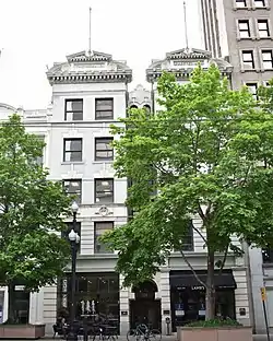 The Herald Building in Salt Lake City, Utah, is a 5-story brick and stone commercial building designed by Chicago architect John C. Craig and constructed by A. & J. McDonald in 1905. The U-shape building contains two 4-story wings on either side of a narrow light well. Horizontal bands of stone and decorative lintels and keystones separate window fenestrations between floors, and a tin cornice on each wing contains "broken pediments, volutes, lion's heads, cove mouldings, brackets, dentils, and flagpoles." The building was added to the National Register of Historic Places in 1976.[2][3]