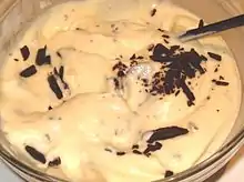 Herrencreme is a German pudding. It is a vanilla pudding mixed with cream, chocolate shavings and a good amount of rum.[1] Typically Herrencreme is a dessert eaten after a large meal, such as at a wedding.
