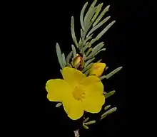 Hibbertia hemignosta is a species of flowering plant in the family Dilleniaceae and is endemic to the south-west of Western Australia. It is a prostrate to erect shrub that typically grows to a height of 30–50 cm (12–20 in).[2] It was first formally described in 1845 by Ernst Gottlieb von Steudel who gave it the name Pleurandra hemignosta in Lehmann's Plantae Preissianae.[3][4] In 2002, Judy Wheeler changed the name to Hibbertia hemignosta in Journal of the Adelaide Botanic Gardens.[5] The specific epithet (hemignosta) means "half-known", but the reason for that name was not given.[6] This hibbertia grows on sandplains, flats and slopes in the Avon Wheatbelt, Coolgardie, Esperance Plains, Jarrah Forest, Mallee, Swan Coastal Plain and Warren biogeographic regions in the south-west of Western Australia.[2]
