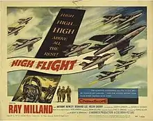 High Flight is a 1957, CinemaScope, British, cold war film, directed by John Gilling and featuring Ray Milland, Bernard Lee and Leslie Phillips. High Flight was filmed with the co-operation of the Royal Air Force (RAF). The title of the film was derived from the poem of the same title by Pilot Officer John Gillespie Magee Jr., an American aviator who flew for the Royal Canadian Air Force (RCAF) and lost his life in 1941 over RAF Cranwell, where much of the film was shot.[3][N 2]