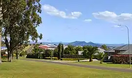 ![]() View over Highfields from Mitchell Road Park, looking west towards Gowrie Mountain | |||||||||||||||