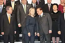 In December 2009, Clinton attended the Copenhagen United Nations Climate Change Conference, where she pushed forward a last-minute proposal of significant new amounts of foreign aid to help developing countries deal with the effects of global warming, in an attempt to unstick stuck negotiations and salvage some sort of agreement at the conference.[95][96] The secretary said, "We're running out of time. Without the accord, the opportunity to mobilize significant resources to assist developing countries with mitigation and adaptation will be lost."[95] The amount of aid she proposed, $100 billion, was in the modest terms of the Copenhagen Accord that was agreed to by the summit.[97]