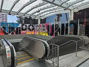 Historic Broadway station is an underground light rail station on the A Line and the E Line of the Los Angeles Metro Rail system. It is located at the southeast corner of 2nd Street and Broadway in the Historic Core section of Downtown Los Angeles.[2] In planning documents, the station was originally going to be named 2nd St/Broadway.[3]