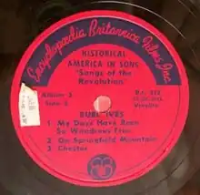 - ↑ Inside front cover, Songs of the Colonies, Album 1 of Historical America in Songs, N.p.: Encyclopædia Britannica Films, 1950.