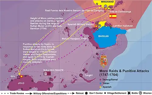 • 1754 - Sultan Muizz ud-Din (former Datu Bantilan), increased his raids and attacks both on Basilan and Zamboanga