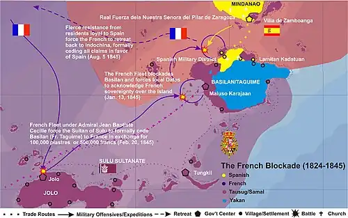 • 1844–45 - French Navy blockades Basilan's premier ports