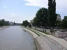 Niš (Serbian Cyrillic: Ниш, pronounced [nîːʃ] ) was built on the ruins of Roman Naissus. The Late antiquity town was known as Naissus, Νάϊσσος, Ναϊσσός (Naissos), Naessus, urbs Naisitana, Navissus, Navissum, Ναϊσσούπολις (Naissoupolis).[1][a] It originated as a hydronym (the Nišava river),[2] either of Celtic or Paleo-Balkan linguistical origin.[b] Niš evolved from the toponym attested in Ancient Greek as ΝΑΙΣΣΟΣ (Naissos), which achieved its present form via phonetic changes in Proto-Albanian and thereafter the placename entered Slavic.[3][4][5] Its common antique name in historiography is Latin Naissus. In Old Serbian, the town was known as Niš (written Нишь and Ньшь).[6]