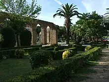 The most important reformist project was the founding of the Sociedad Económica de Amigos del País[note 2] by the autarky in the 1770s, the first of its kind in Extremadura, however having a brief existence and scarce achievements.[24] Also noteworthy are the works carried out on the initiative of the Bishop of Plasencia José González Laso, who was in charge of the diocese from 1766 until his death in 1803. His work was vast and covered various fields. In charity and health, he created a hospice in the old Jesuit school and enlarged the Santa María Hospital; in education, he reformed the Estudos de Humanidades (a university-like school). However, the best-known aspect of the work of José González Laso, and the one that had the greatest impact on his contemporaries, was the commitment to construction, with numerous roads and bridges having been opened and repaired, which contributed decisively to the relief of the chronic problem of communication routes. But the bishop's activity focused even more on urbanism, reforming the episcopal palace and building new streets, for which it was necessary to tear down part of the walled enclosure.[24]