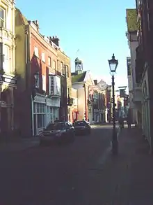 Somewhat more peacefully 1687 saw the construction of the Guildhall, part financed by Sir Joseph Williamson FRS with the ceiling being given by Sir Cloudesley Shovell.[18][44] The weathervane is of later work having been first erected in 1780. It is a gilded model of an eighteenth-century fully rigged ship. Subsequent work on it has been limited to repairs following storm damage.