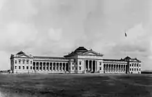 The board of trustees for San Diego Normal School was established by Budd and first met on June 3, 1897.[2] They appointed Samuel T. Black, who had previously served as the California Superintendent for Public Instruction, as president of the new school by unanimous decision on October 1, 1898.[2] On January 21, 1898, the San Diego firm Hebbard and Gill was selected to design the new school building. The architect Irving Gill, who developed the building in a Beaux-Arts style, was responsible for the design. The ground was broken for construction on August 1, the cornerstone of the building was laid on December 10, and the building was dedicated on May 1, 1899.[5][6] During the building's construction, the first classes were held at the Hill Block on the southwest corner of 6th and F street in downtown San Diego beginning on November 1, 1898.[5][7] The classes moved to the Normal School in May 1899, even as construction continued.[5] 135 students (90% of whom were women), were enrolled by the end of the first year; enrollment grew to 400 by 1910.[5]