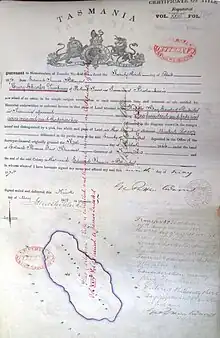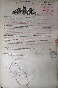- 1 2 "File:Smooth Island (Tasmania)- Quested mortgage information.JPG". 16 September 2017. Archived from the original on 18 July 2021. Retrieved 18 March 2018 – via Wikipedia.