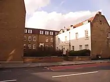 While strictly speaking not properly part of Stroud Green, Womersely House, close by the St Peter-in-Chains catholic church, has already been noted as home to the Turner family, prominent local landowners in the late 19th century, who had previously occupied Stapleton Hall. By the early 20th century however it was a hostel for single working women.[45] It occupied a plot of land bordered by Elm Grove and Womersley Road, and had been demolished by 1947 as can be seen on various RAF aerial survey photos on the Historic England website.[29] The site is currently (March 2008) being re-developed.