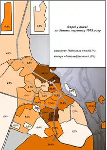 During the Russian Revolution and the Ukrainian War of Independence the city switched hands several times with new pogroms against the Jews. After the establishment of the Ukrainian SSR the Jewish population grew rapidly and reached approximately 224,000 people in 1939.[1]