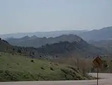 In geology and geomorphology, a hogback or hog's back is a long, narrow ridge or a series of hills with a narrow crest and steep slopes of nearly equal inclination on both flanks. Typically, the term is restricted to a ridge created by the differential erosion of outcropping, steeply dipping (greater than 30–40°), homoclinal, and typically sedimentary strata. One side of a hogback (its backslope) consists of the surface (bedding plane) of a steeply dipping rock stratum called a dip slope. The other side (its escarpment, frontslope or "scarp slope") is an erosion face that cuts through the dipping strata that comprises the hogback.[1][2][3][4] The name "hogback" comes from the Hog's Back of the North Downs in Surrey, England, which refers to the landform's resemblance in outline to the back of a hog.[1] The term is also sometimes applied to drumlins and, in Maine, to both eskers and ridges known as "horsebacks".[4]