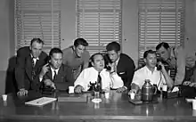 Hollywood Black Friday, or Hollywood Bloody Friday,[1] is the name given, in the history of organized labor in the United States, to October 5, 1945. On that date, a six-month strike by the set decorators represented by the Conference of Studio Unions (CSU) boiled over into a bloody riot at the gates of Warner Bros.' studios in Burbank, California led by Herbert Sorrell. The strikes helped the passage of the Taft–Hartley Act in 1947 and led to the eventual breakup of the CSU and reorganization of the rival International Alliance of Theatrical Stage Employees (IATSE) leadership.[2]