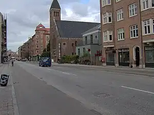 Nathanael's Church's was completed in 1899. Its architect is Thorvald Jørgensen who later designed the present Christiansborg Palace. The church took over Holmblad's villa which was expanded and adapted in 1988 and is now known as Nathanaels Sognegård. The oldest surviving building in the street is the low building from 1859 at No. 70.[4]