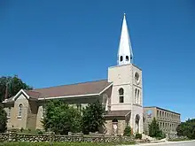 Holy Cross Church is a Roman Catholic Parish church in the Wiikwemkoong Unceded Reserve, north-eastern Manitoulin island. It was founded by the Society of Jesus (Jesuits) in 1844 and was their first mission in Northern Ontario since their suppression in 1767.[1] The mission played a significant role in increasing literacy in Canada of the Ojibwe language.[2] The church building itself was constructed in 1852.[3] It is situated to the north of Wiikwemkoong on Wikwemikong Way, next to the Giizhigaanang Community Centre.