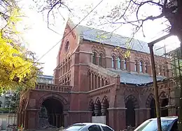 Before the forced amalgamation of Anglican denominations in mainland China into the lianghui in 1958, the church served as the cathedral of the Anglican Church in China, known as Holy Trinity Cathedral (traditional Chinese: 聖三一主敎座堂; simplified Chinese: 圣三一主教座堂; pinyin: Shèngsānyī Zhujiaozuotáng), and the oldest such cathedral in China. It was colloquially known as "the Red Church". It was the English speaking Anglican church of Shanghai in 1866-1949. It also had a boys' school attached, built in 1928. This was attended by the author JG Ballard in his youth, and it features in his novel, Empire of the Sun.[7] The 1st Shanghai Baden-Powell Group was based there. Later, it became the cathedral of the Diocese of Chekiang in 1930, still an English speaking church.[8]