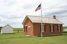 The Freeman School, built of foot-thick red brick with carved limestone lintels, was the longest continuously used one-room school in Nebraska (1872–1967). The school also served as a Lutheran church, a polling place for Blakely Township, and a community center for debates, clubs, and box socials. The National Park Service restored the school to appear as it did during the 1870s.[9]
