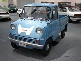 The T360 was produced as a conventional rear-wheel drive pickup truck, a flatbed (the T360F), a flatbed with folding sides (the T360H), and as a covered van (the T360V). There was also a version of the T360 called the "Snow Crawler", equipped with tracked propulsion units at the rear. Due to its expense, the Snow Crawler remained a rarity in spite of its usefulness in certain parts of northern Japan. The T500 came either with a conventional pickup body (T500), or with the folding side flatbed, this time with the "F" suffix; called the T500F.[3]