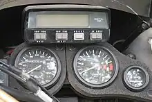 The later XRV's instruments feature a large trip computer LCD display mounted above the conventional speedometer and tachometer, styled like Dakar racers' navigational displays, and incorporates a range of extra electronic timers and trip meters.[11]