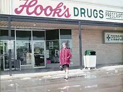In October 1900, pharmacist John A. Hook opened the first Hook's Drug Store in an Indianapolis German community at the corner of South East and Prospect Streets. A second location opened at the corner of New Jersey and East Washington Streets and Hook added Edward F. Roesch as a partner.[1] By 1912, the chain had expanded to twelve stores. Many of Hook's interwar drug stores were designed by Kurt Vonnegut Sr. of Vonnegut & Bohn. Roesch became president of the company in 1943 upon Hook's death. In 1956, following Roesch's death in a traffic accident, John Hook's son, August F. “Bud” Hook, assumed leadership of the company. The chain added 150 new stores between 1946 and 1972.[2]