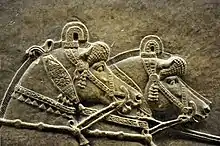 The equine image was common in ancient Egyptian and Grecian art, more refined images displaying greater knowledge of equine anatomy appeared in Classical Greece and later Roman work. [3] Horse-drawn chariots were commonly depicted in ancient works, for example on the Standard of Ur circa 2500BC.