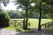The area slopes gently upwards towards the south and east, from an elevation of around 50 metres at the western boundary near Wybunbury, to a high point of 76 metres at SJ714494, on the South Cheshire Way near Ellesmere Farm. Outside Hough village, the parish is predominantly rural, with the major land use being agricultural. Swill Brook runs along parts of the eastern boundary of the parish, and an unnamed tributary forms part of the southern boundary. Numerous small meres and ponds are scattered across the area. Several small areas of woodland fall within the parish, including Cobb's Moss and Hough Gates.[11][12] To the east of Cobb's Lane, south of Hough village, lies Hough Common, an area of common land designated as a county site of biological importance (grade B).[12][13]
