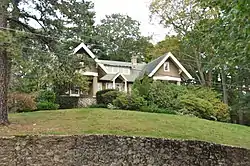 The House at 30 Sheffield Road is one of the more creative early 20th-century Craftsman style houses in Wakefield, Massachusetts. The 1+1⁄2-story house was built (c. 1916) predominantly of fieldstone and finished in stucco, and was one of the first houses built in the Sheffield Road subdivision. The main body of the house as a gable roof, with two cross-gable sections facing front sheltering porches set on heavy columns. The entry is in the center of the front facade, topped by a small gable end, and with a small pergola in front.[2]