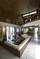 The residence was accommodated along a visual axis that stars at the lot's entrance, stretches to its tip, and connects with one of the ends of a small bay shaped by the beach. Two volumes in concrete, laid out symmetrically in relation to a diagonal axis, contain the bedrooms and the kitchen. The central space, including a living room and a family room covered with a wooden sloping roof aligned with the main view, follows the direction underlined by the organizing axis. The design included built-in furniture that maximizes the enjoyment of views towards the ocean.[4]