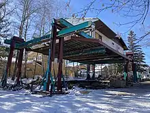 The process is the first step in structure relocation in which the building is moved to a different location.[1][2] House raising may also be a part of a renovation to build a foundation under an existing house or make a house larger by adding a new floor level. Often employed in areas that are prone to flooding and storm damage, this process can be achieved through the use of either timber piles or helical piles.[3] Once a house is raised and supported on cribbing, a new foundation can be constructed beneath it.[4] After Hurricane Katrina and Hurricane Sandy large numbers of houses in parts of Louisiana, New York and New Jersey were raised to avoid future flooding.