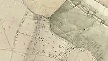 The exact site of the previous manor house, also called Hoveton Hall, demolished when the new house was built in 1809, is unknown as no part of it survives. However Basil Cozens-Hardy concluded, having analysed old maps and data: "it would seem that the original Hall was near the kitchen garden in the park, as a map and schedule of about 1840 (see map below) calls the field to the south-west "the Old Hall Close” (a "close" being an old term for an enclosed field). Moreover in Faden’s map of 1797 (see image) the Hall is shown at this point with an avenue running down to the road."[4]