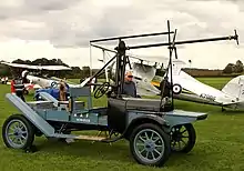 One original Hucks starter, built during 1920 by de Havilland, is known to survive at the Shuttleworth Collection in Bedfordshire; during the 2010s, it became the first Hucks Starter to actually start an aircraft in 70 years when it successfully started a preserved Hawker Hind.[1][8] The Shuttleworth's unit has since been regularly used to start the vintage aircraft based there, while a number of working reproductions have also been built, based on original Ford Model T chassis.[1] The RAF Museum London has a restored example, comprised both of original pieces from multiple vehicles and new-build bodywork, on permanent display.[3]