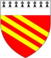 Arms of Venner of Hudscott, Chittlehampton: Gules, three bends or a chief per fess ermine and argent[11]