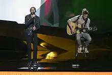 Hungary was allocated to compete in the second semi-final on 16 May for a place in the final on 18 May.[19] In the second semifinal, the producers of the show decided that Hungary would perform 12th, following Armenia and preceding Norway.[20] On stage, ByeAlex was joined by backing vocalist Helga Wéber and guitarist Dániel Kővágó.[21]